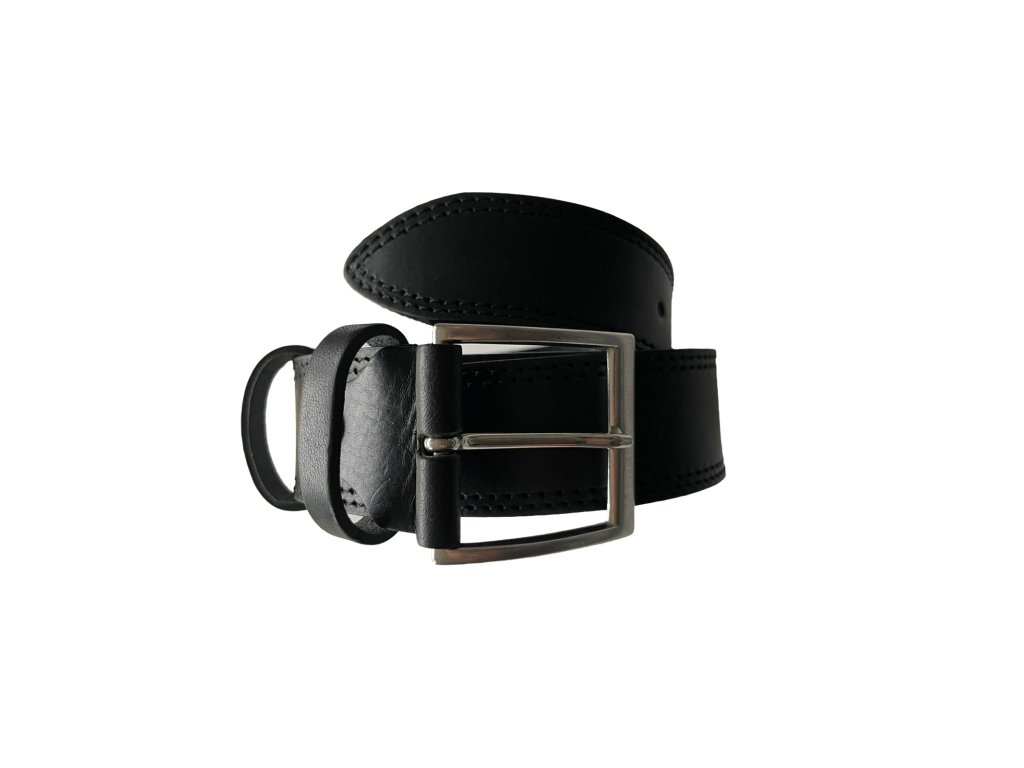 Prošívaný pánský kožený pásek v černé barvě. Do kalhot, džínů nebo kraťasů na běžné nošení i na společenskou akci.